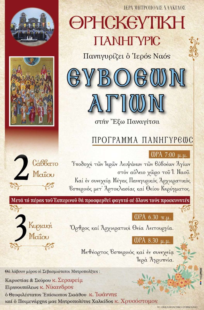 ΠΡΟΓΡΑΜΜΑ ΠΑΝΗΓΥΡΕΩΣ ΙΕΡΟΥ ΕΞΩΚΚΛΗΣΙΟΥ ΑΓ. ΔΗΜΟΥ ΙΣΤΙΑΙΑΣ